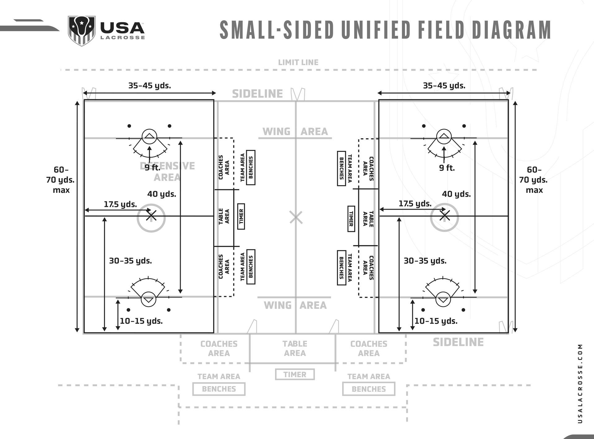 - Put creases so that the goal will be on the yellow line between 25th and 30th yard line